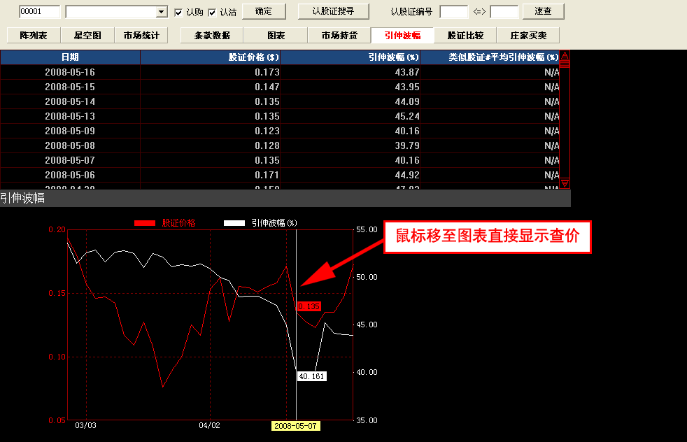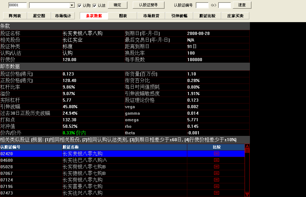 窝轮指南针包括:最新权证资料数据,通过认权证搜寻设置条件搜索权证,可切换星空图;认股证分析功能强大,包括条款及数据、图表、市场持货、引伸波幅、股证比较及庄家买/沽平均价表等等。